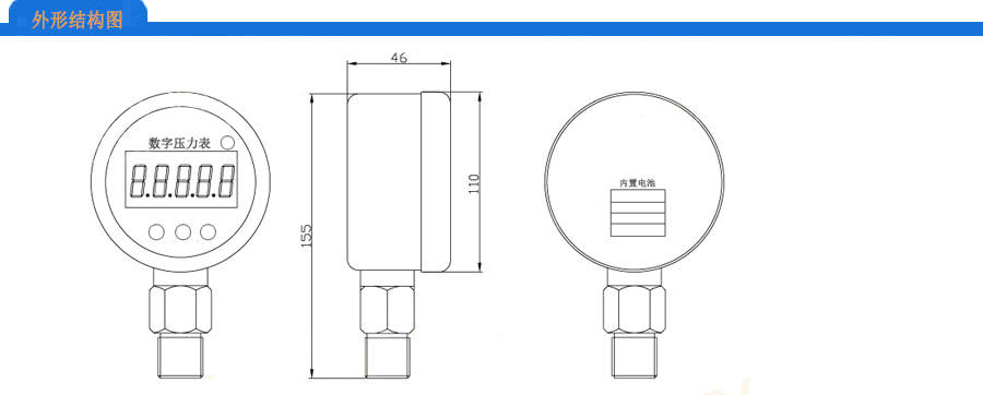 顯示方式:三種壓力(KPa、Mpa、Bar、PSI、Kg.F/cm² )單位一鍵切換