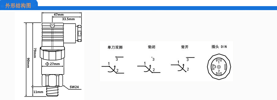 SC-YK46系列精巧型壓力開關結構緊湊,采用DN標準插頭,接線方便,測量范圍廣(0~400bar)。過載能力高(可高達:1230bar),高重復性,具體常開或常閉觸點,接點鍍金,觸點容量大。可用于:水、油壓力的測量。