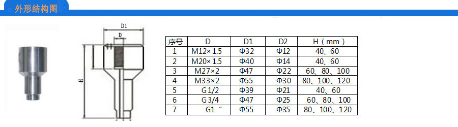 螺紋規(guī)格:M27×2、M20×1.5、M33×2、G1/2、G3/4、G1“(其它要求可定制)