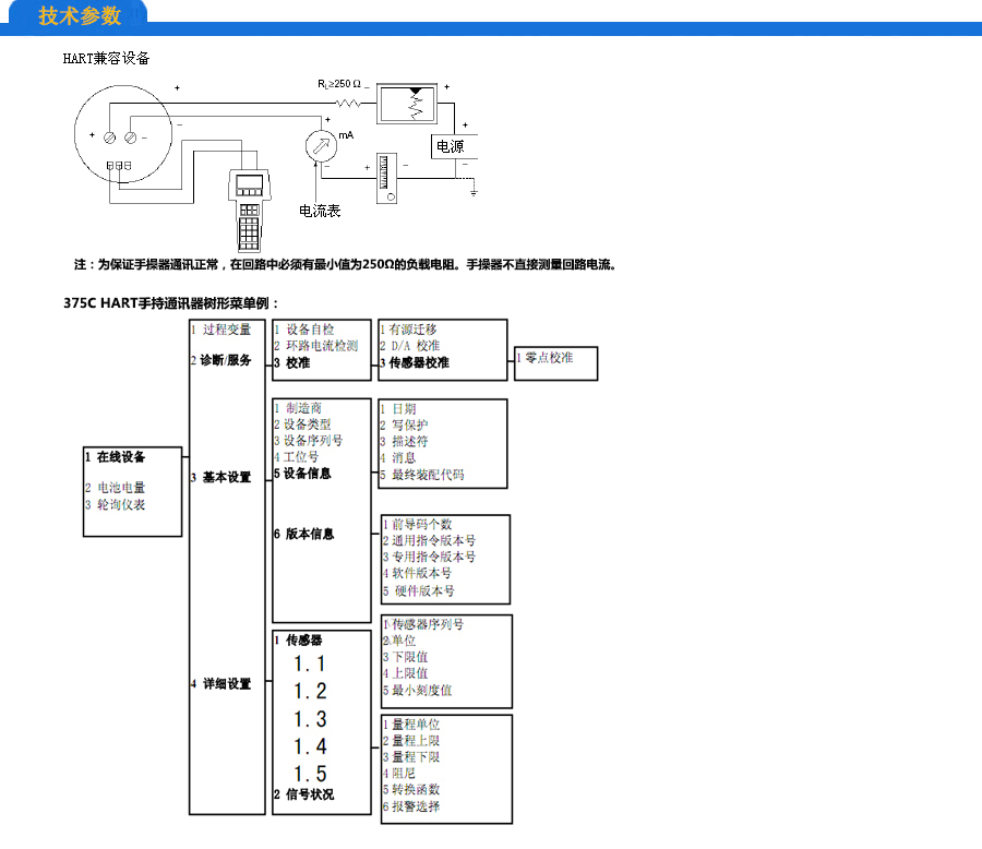 HART手操器中HART(Highway Addressable Remote Transducer),可尋址遠(yuǎn)程傳感器高速通道的開(kāi)放通信協(xié)議。可以在遠(yuǎn)端控制室或儀表就地接入單獨(dú)對(duì)HART儀表進(jìn)行通訊操作,也可以并聯(lián)在其負(fù)載電阻(250Ω)上,連接時(shí)不必考慮線極。