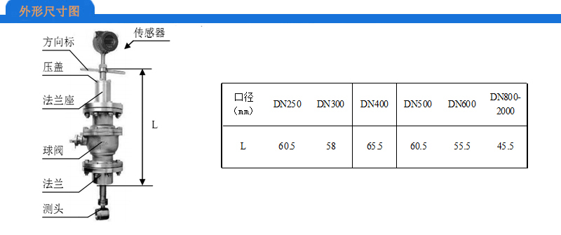 | 注:DN250~DN600可按客戶要求訂貨;DN300以上口徑推薦使用插入式渦街流量計(jì)。 | ||