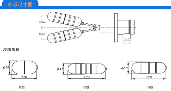 側裝式浮球開關既可水平安裝于桶槽側壁,也可垂直安裝在桶槽頂部其結構簡單合理,性能穩定可靠,安裝方便控制部份與液體介質隔離,可適用于高溫,高壓環境多種材質,多種連接方式可滿足不
