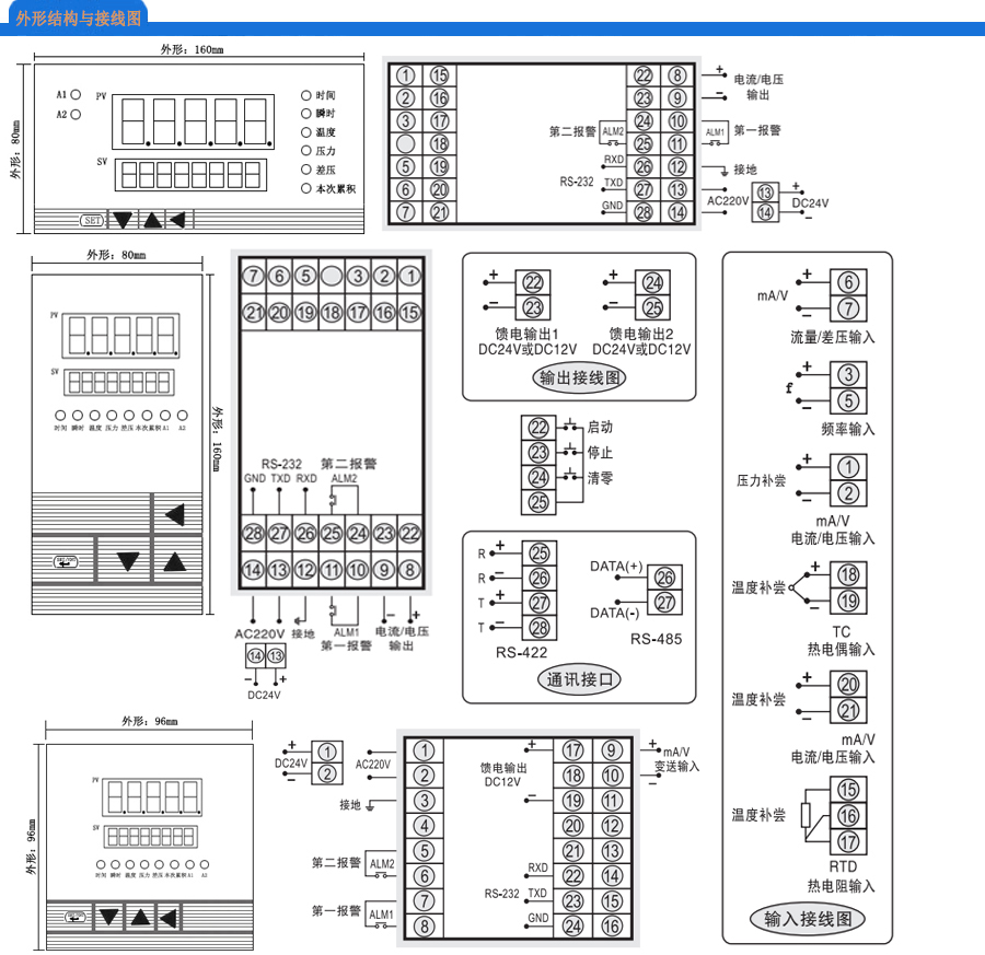 報(bào)警功能:上限、下限、上下限、下回差、雙回差、OK方式、正值方式等