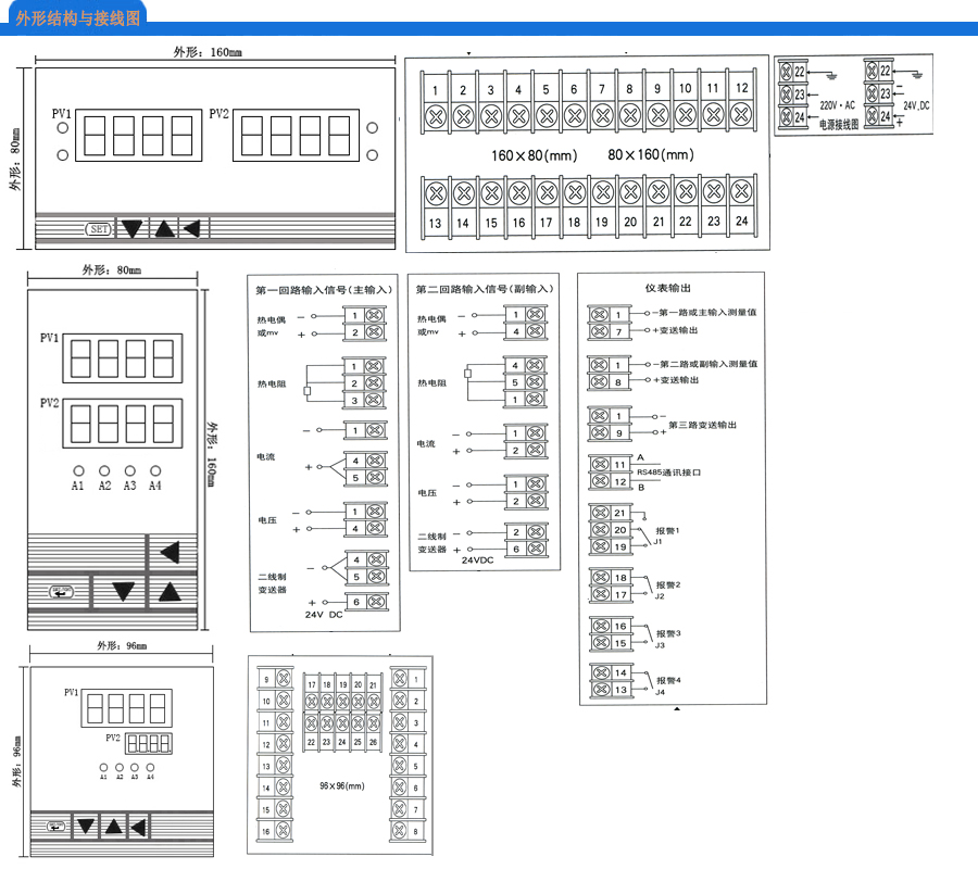 橫式160×80mm (開孔152×76mm) 豎式80×160mm (開孔76×152mm) 方式96×96mm (開孔92×92mm) 方式72×72mm (開孔68×68mm) |