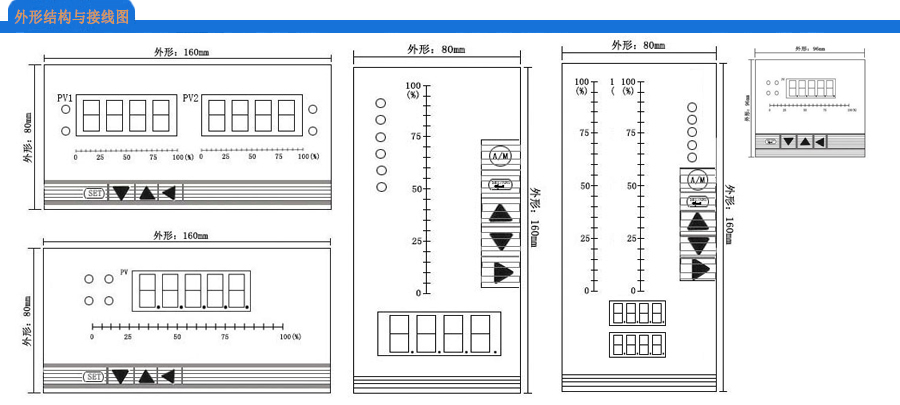 橫式160×80mm (開孔152×76mm) 豎式80×160mm (開孔76×152mm) 橫式96×48mm (開孔92×45mm) 方式96×96mm (開孔92×92mm) 方式72×72mm (開孔68×68mm) 方式48×48mm (開孔45×45mm) |